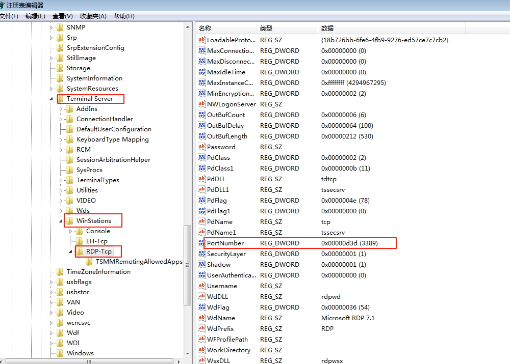 [HKEY_LOCAL_MACHINE\SYSTEM\ CurrentControlSet\Control\Terminal Server\ Wds\rdpwd\Tds\tcp],看见